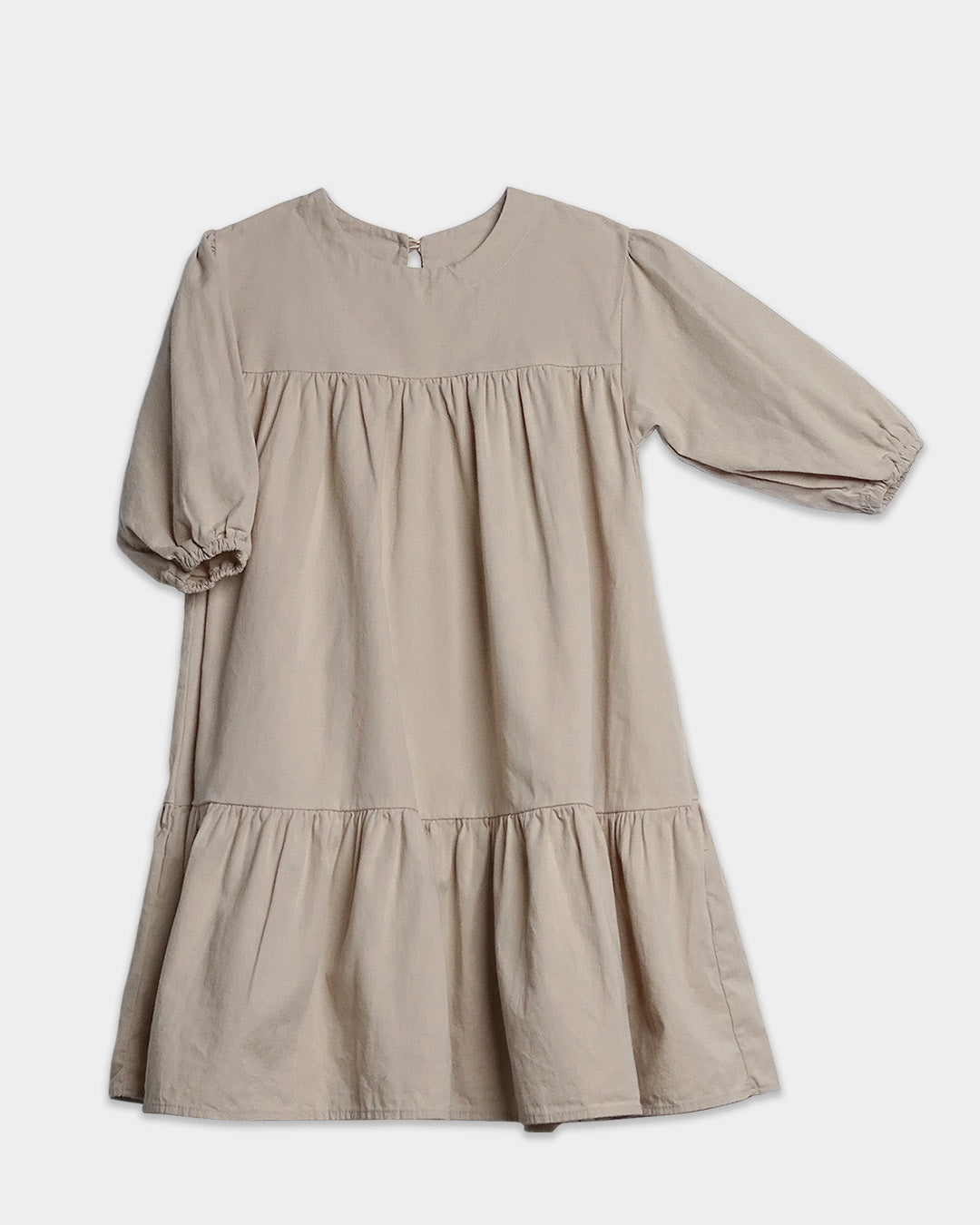 Made for movement and charm, the Bubble Volume Dress brings a soft silhouette and gentle fullness to everyday dressing. Crafted from breathable cotton, this sweet style features elbow-length bubble sleeves, a flowing tiered body, and a button keyhole at the back for easy changes. Whether it’s a playdate or a family day out, it’s the kind of comfy-elevated piece they’ll want to wear on repeat.