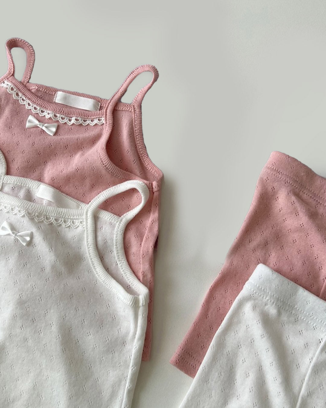 Play, lounge, repeat! The Luna Lace Tank Set is your little one’s new favorite — designed with love for everyday comfort and cuteness. Soft pastels, lace details, and a tiny bow make this set irresistible for sunny days and cozy nights.