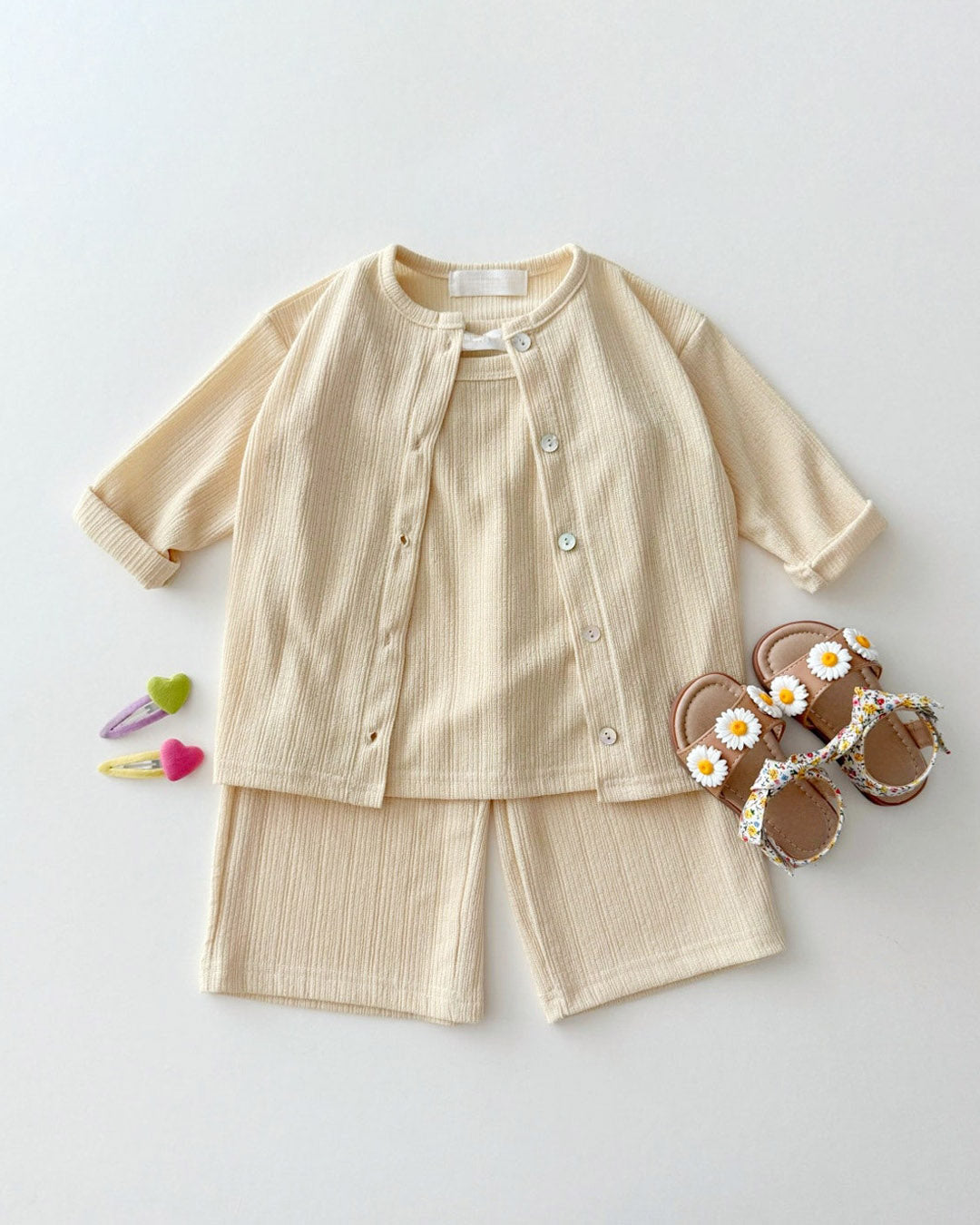 Mix and match or wear it as a set for polished playtime style. Three pieces, endless cozy combinations!