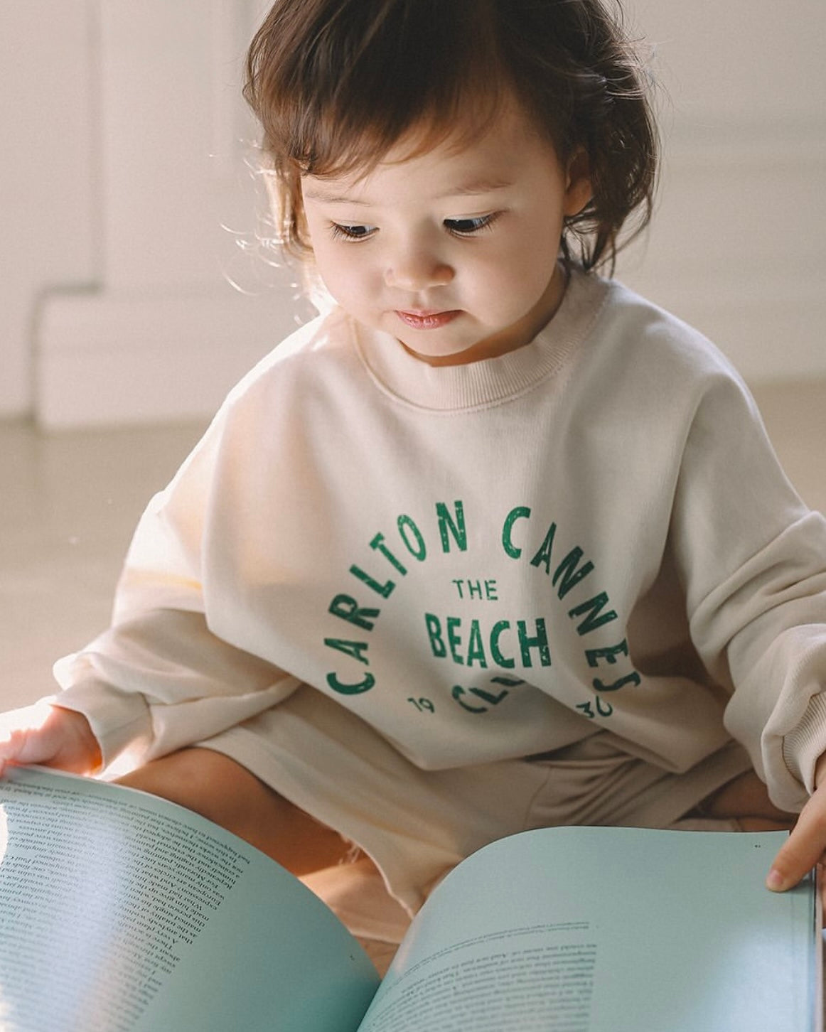 Made from a cozy, breathable fabric, it features a classic collegiate-style "Carlton Cannes Beach Club" print, adding a nostalgic yet timeless vibe. With its slightly oversized fit and ribbed cuffs for extra comfort, this sweatshirt is perfect for layering over shorts, leggings, or joggers. Pair it with our Carlton Shorts for the perfect everyday look.