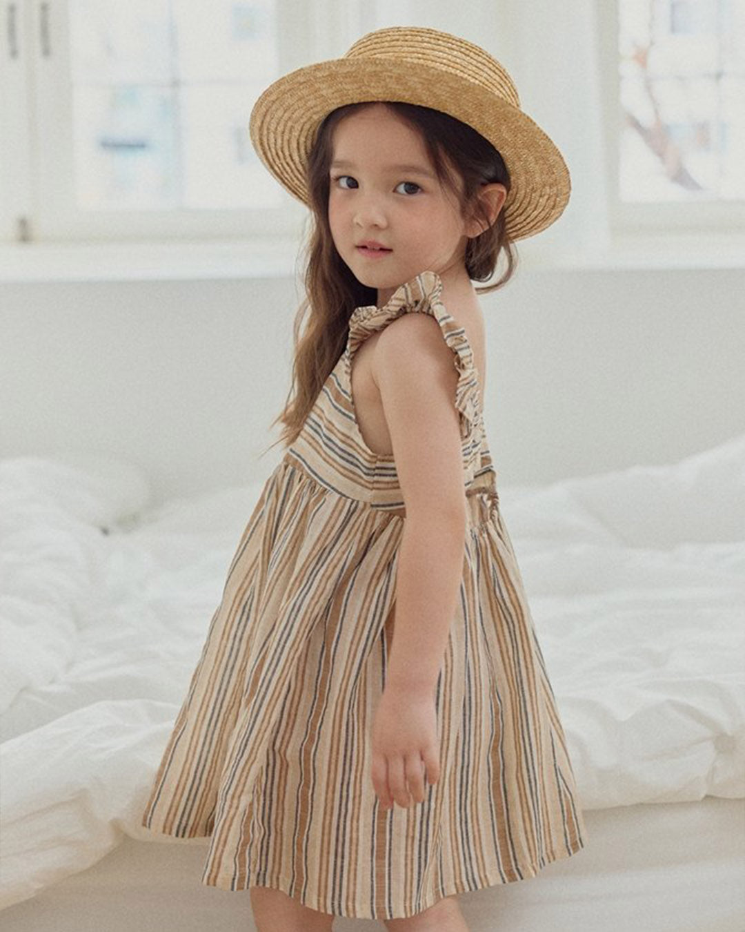 Say hello to your little one’s new favorite dress! The Romi Frill Stripe Dress is full of charm with soft ruffled straps, a sweet cutout back, and breezy stripes that feel just like sunshine. Whether it’s a family picnic, a beach stroll, or twirling around the house, this dress is ready for all the smiles and sunshine.